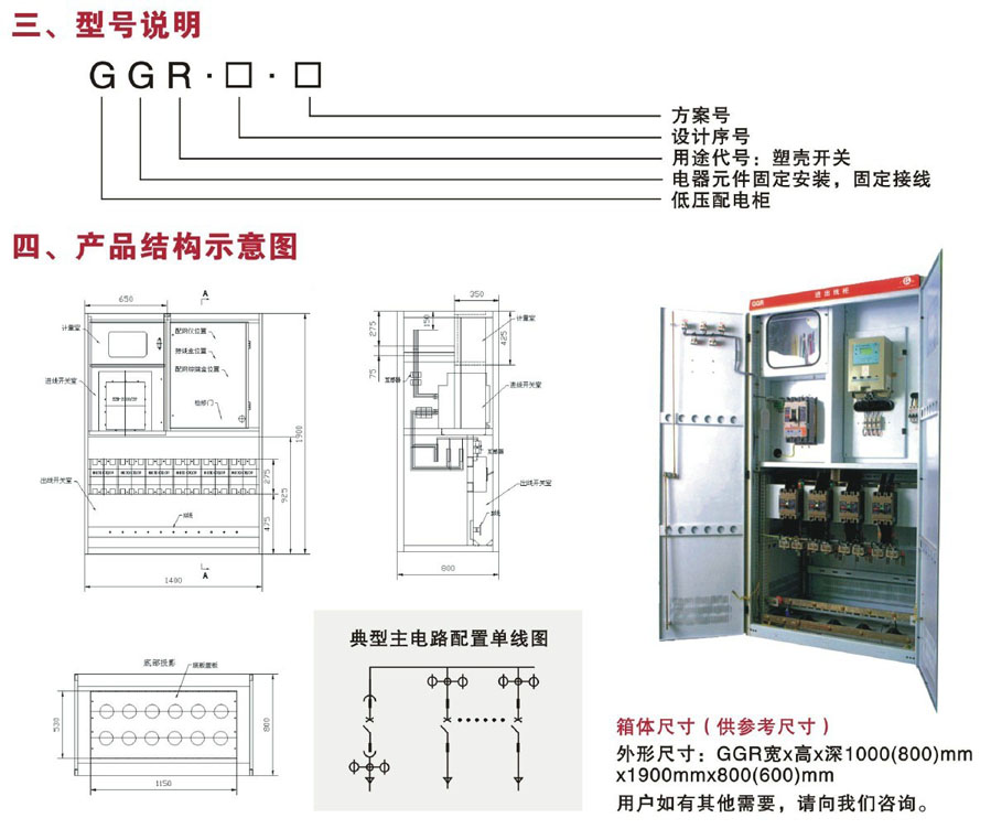 >產(chǎn)品GGR靠墻安裝正面維護(hù),門板貼橡膠條,防護(hù)等級戶內(nèi)達(dá)到30,戶外達(dá)到IP33;內(nèi)部按主要元器件分成各功能室,計量室設(shè)計成一個外面無法拆裝的密封空間;正面預(yù)留足夠大的檢修門,方便后面器件檢修,出線