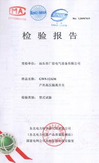 GW9-12/630戶外高壓隔離開關檢驗報告