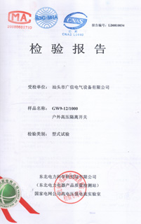 GW9-12/1000戶外高壓隔離開關檢驗報告