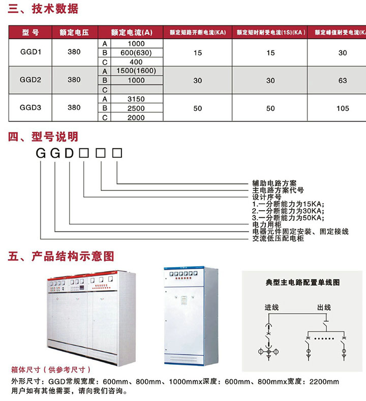 >本公司生產的固定封閉式開關柜GGD系列低壓交流配電柜適應于三相交流50Hz,額定電壓0.4KV戶內配送電裝置,廣泛應用于城網,農網改造,參考國外類型產品設計并加以改進后開發的產品,加上先進靈活的裝配方案,可以滿足市場不斷變化的要求。